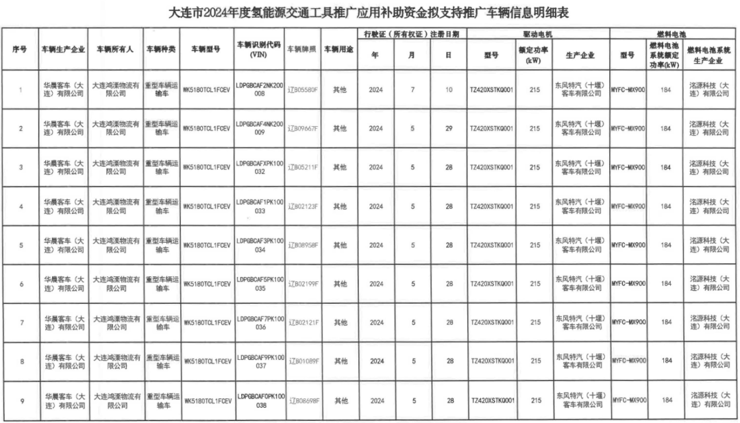 近日,大连市工业和信息化局发布《关于2024年度氢能源交通工具推广应用补助资金申报项目的公示》。